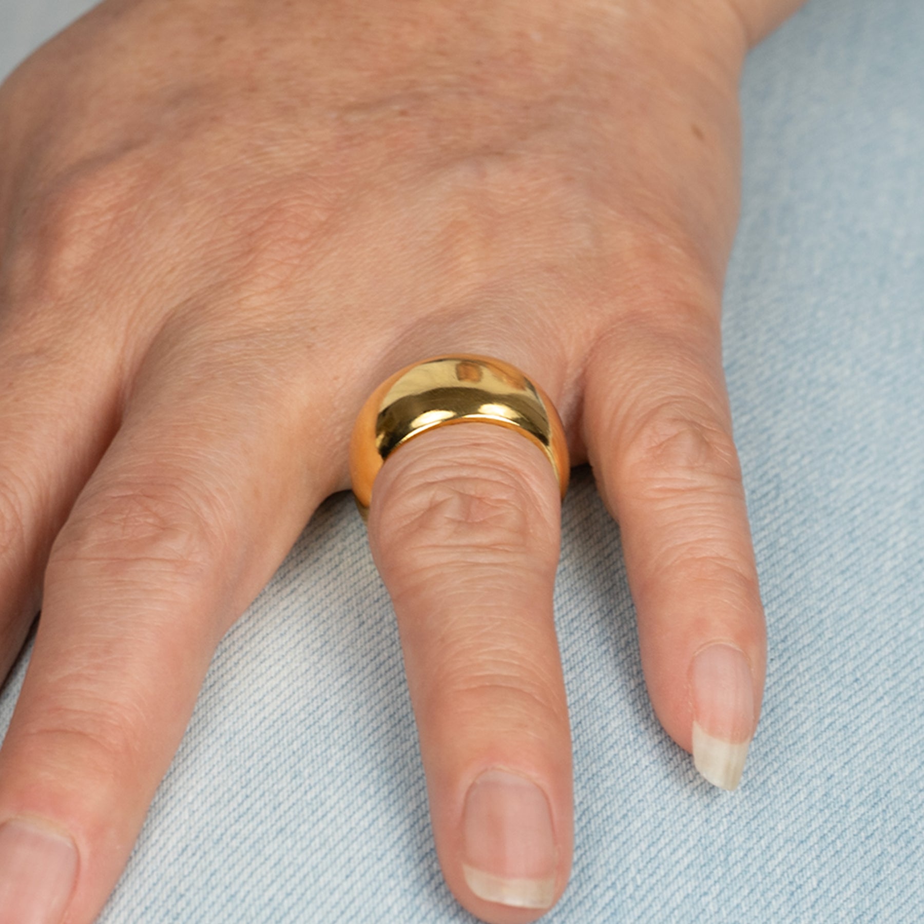 24k gold dome band 12mm wide worn on hand