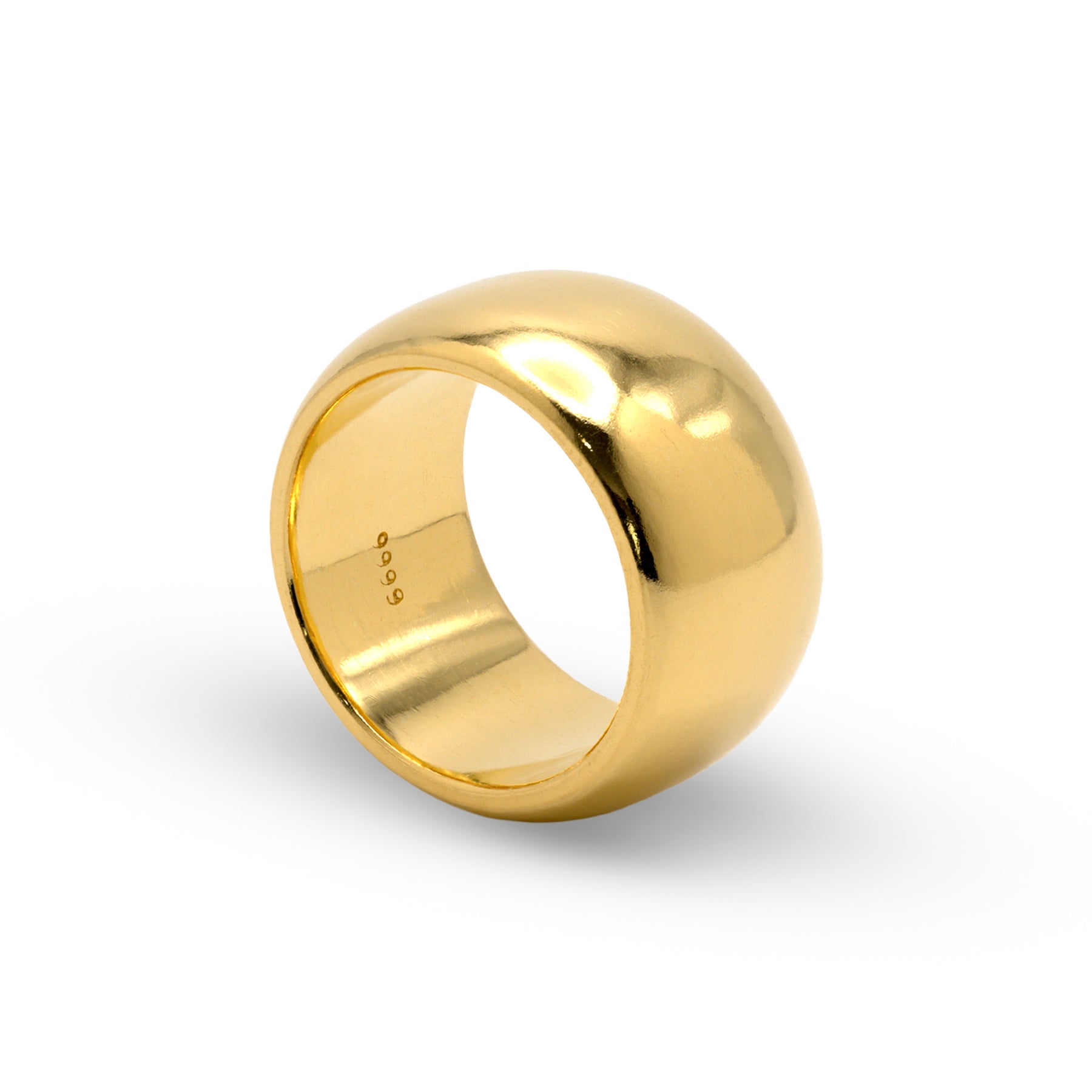 This 24K gold dome band weighs exactly 1 troy ounce (31.1 grams) of 999.9 fine gold. Crafted from certified investment-grade gold sourced from reputable refiners, this high-polish ring combines timeless elegance with intrinsic value. A striking statement piece where luxury meets smart investment.