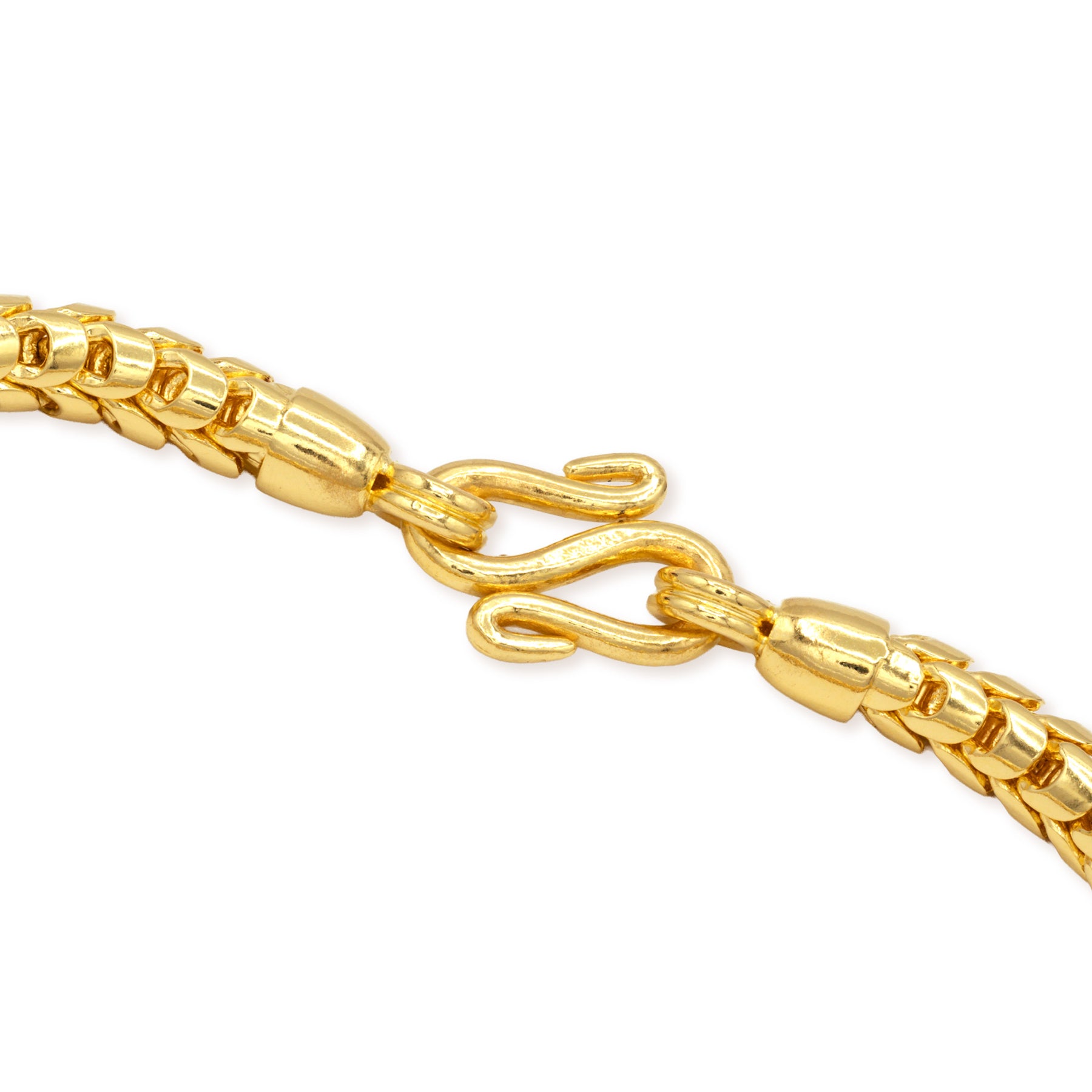 Secure S-clasp lock on 5.5mm 24k gold franco chain bracelet