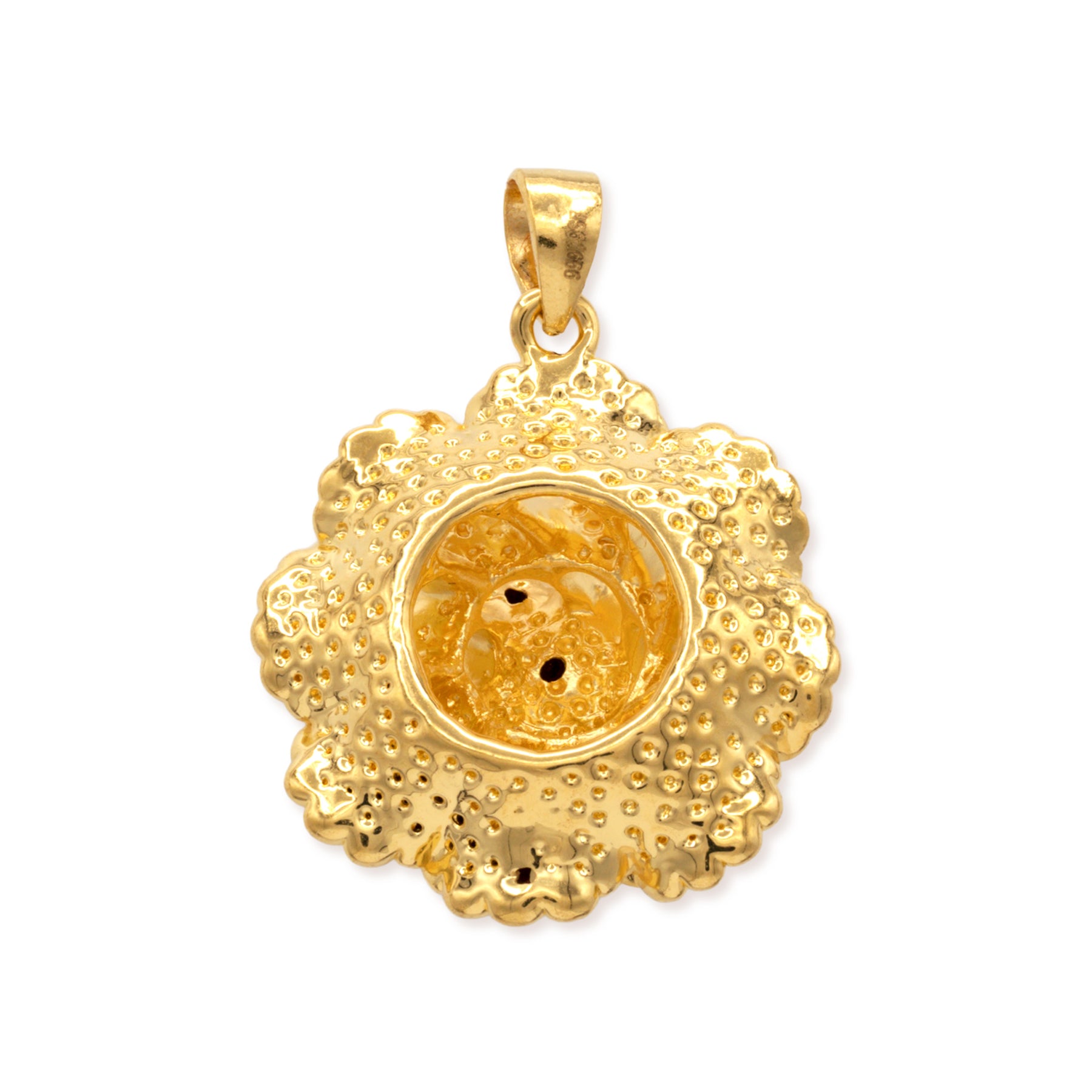 Beautiful 24k gold pendant featuring a three-layer peony flower with dimensional petals and intricate detailing. The multi-tiered design creates stunning depth and texture, while the ruffled edges add feminine elegance.