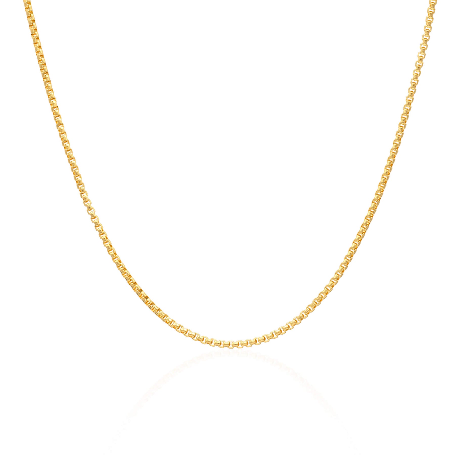Crafted from 24k gold, this rounded box chain features smoothly rounded links in a refined 1.4mm width with secure M lock clasp. A timeless piece of elegant beauty that combines lasting quality with smart investment.