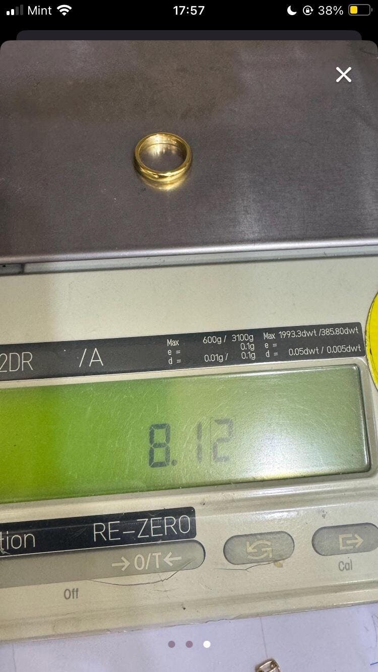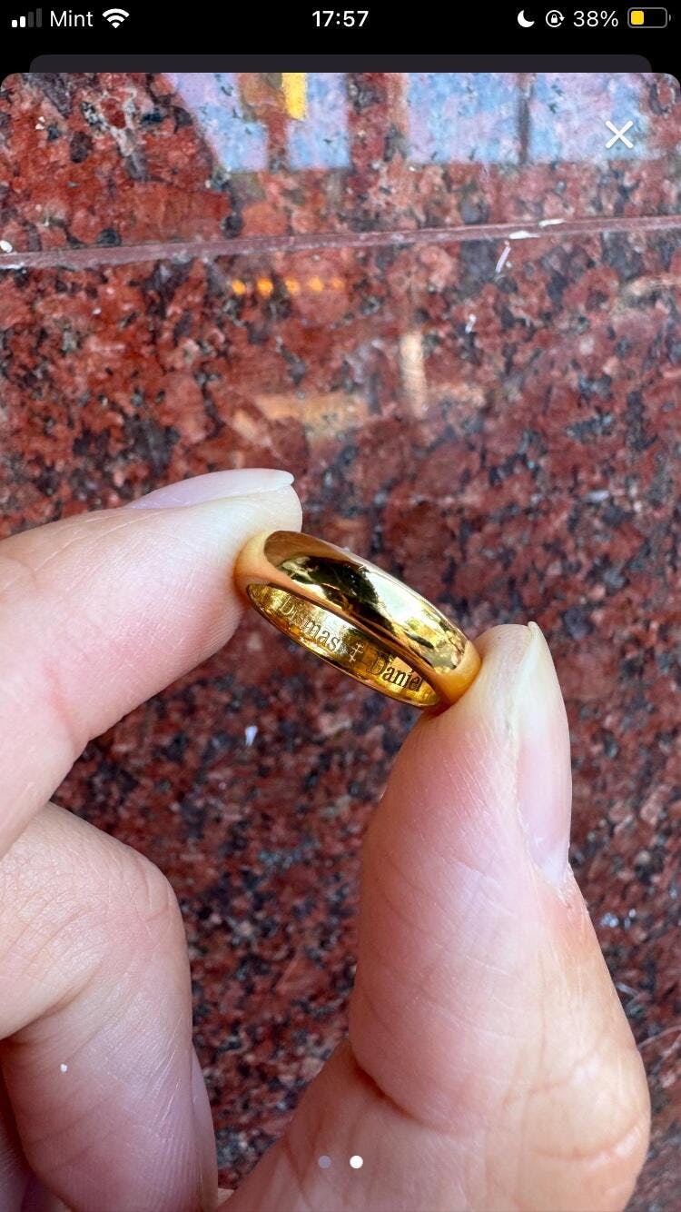 Fantastic very very solid gold band at just size 5.5 was over 8g of solid gold used; perfectly engraved with excellent customer service and support the whole way through.